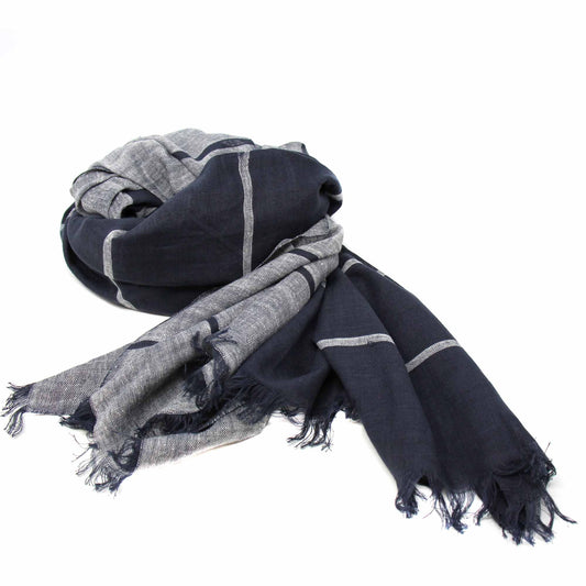 Hand-printed Cotton Scarf, Black & Gray Stripes with Fringe