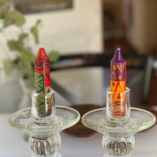 Hand-Painted 4" Dinner or Shabbat Candles, Set of 4 (Indabuko Design)