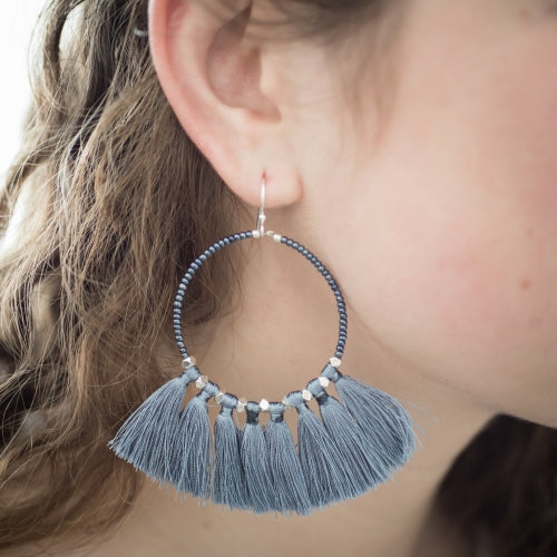 The Rosette Tassel Earring, Seashell - Aid Through Trade