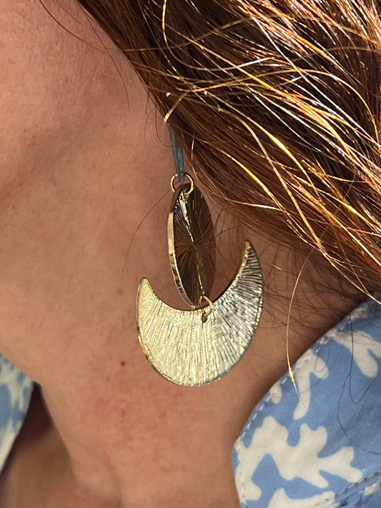 Rangiroa Earring: Bridesmaid gift | Beach vacation | BOHO earring| Dangle earring | Gold | Patina Handmade earring | Festival | Moon