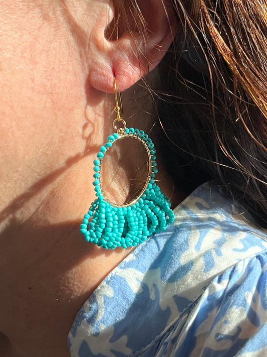 Lagoon Blue: Turquoise Beaded Earring | Beach vacation | BOHO | Southwestern | Bridesmaids gift| Beach vibes | Dangle earring |
