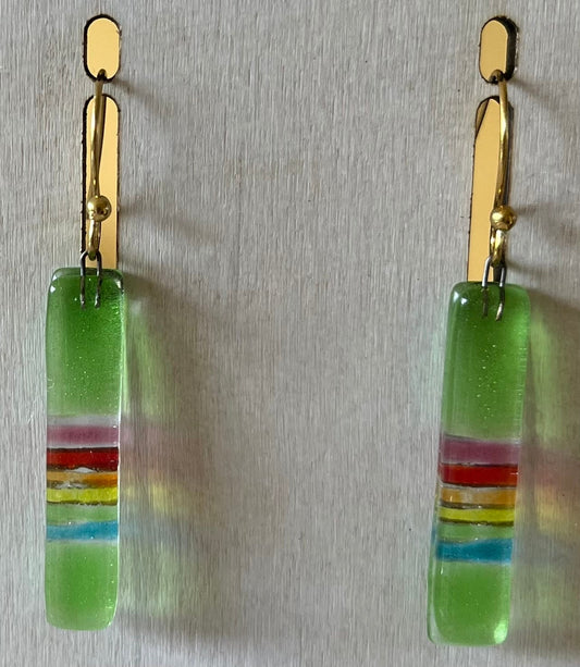 Green striped Fused Glass Earring | Beach vacation | BOHO | Southwestern | Bridesmaids gift| Beach vibes | Dangle earring | Gold