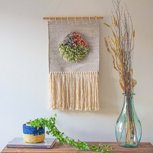 Handwoven Boho Wall Hanging, Neutral with Pop of Color