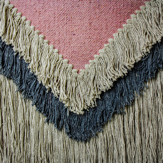 Handwoven Boho Wall Hanging, Pink with Cream Fringe