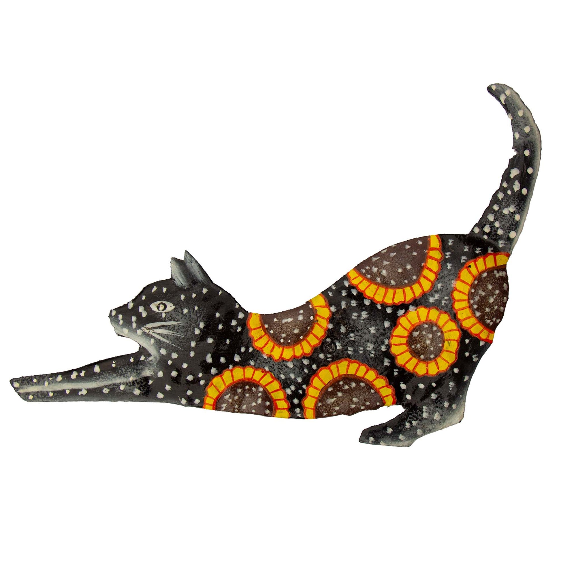 Playful Cat Trio Painted with Sunflowers Haitian Steel Drum Wall Art