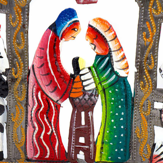 Haitian Metal Drum Tabletop Nativity with Barn Animals