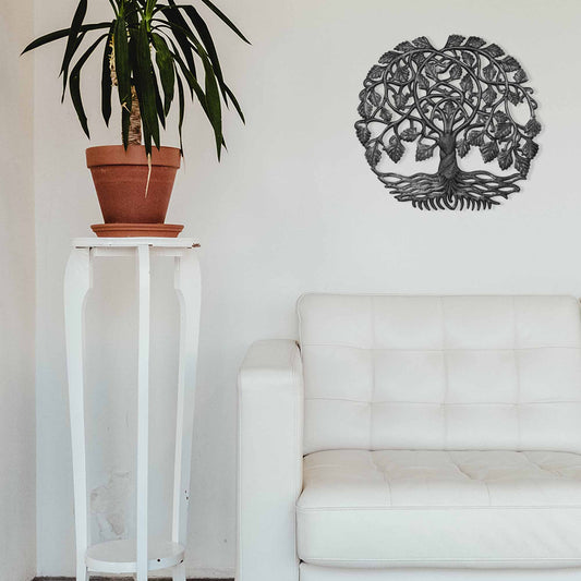Rooted Tree of Life in Circle Haitian Metal Drum Wall Art