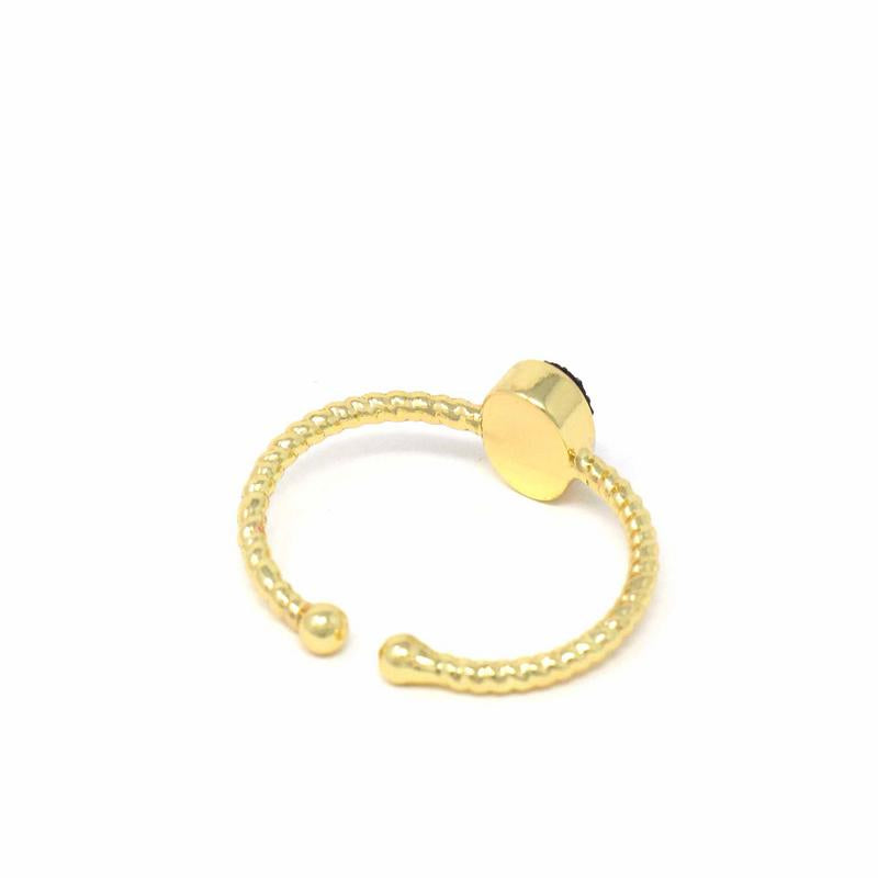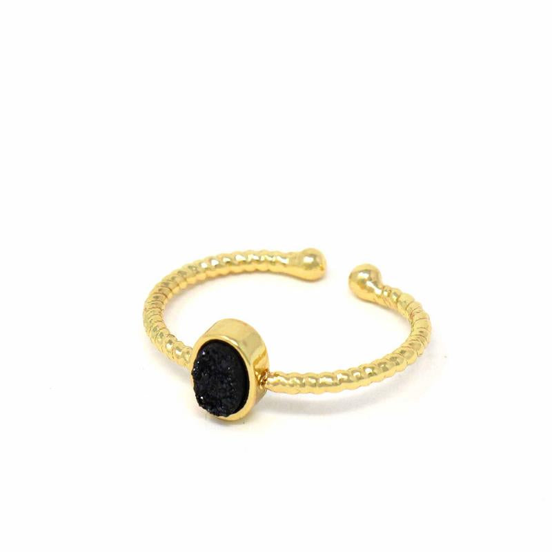 Black druzy agate stone with 14-k gold layered over copper. One size fits most. Oval measures just over .25 inches long. Hypoallergenic; lead and cadmium free with nickel content less than 100 ppm. This purchase transforms lives. Jewelry proceeds help exploited women and girls experience freedom, establish independence and develop careers. Helpful Tips: Keep jewelry away from water and harsh chemicals; store separately in a soft pouch.