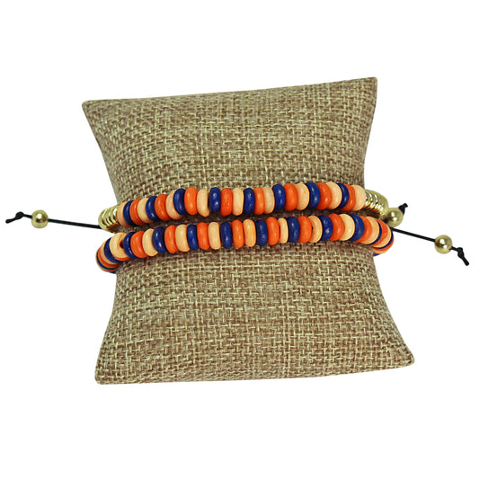 Ensemble de bracelets réglables en perles d'os, roses et bleus