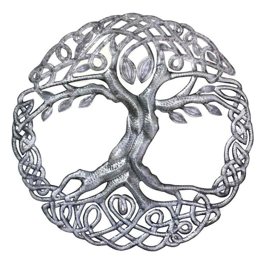 Décoration murale en métal double arbre de vie 24 pouces de diamètre - Croix des Bouquets